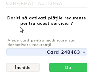 - Po trejų nesėkmingų mokėjimų bandymų, pasikartojimas automatiškai bus deaktyvuotas paslaugos lygyje, o jo vėl aktyvavimui reikės atlikti aukščiau nurodytą procedūrą.