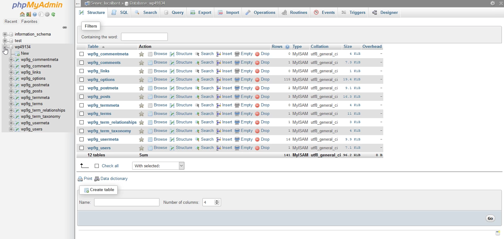 - Webuzo turi iš anksto įdiegtą PhpMyAdmin programą panelėje. Ši programa leidžia mums grafiškai peržiūrėti duomenų bazę.