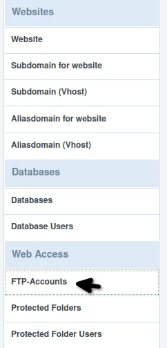 - ISPConfig valdymo pultas leidžia pridėti neribotą FTP paskyrų skaičių, susijusių su domenais, pridėtais prie talpinimo meniu Websites;