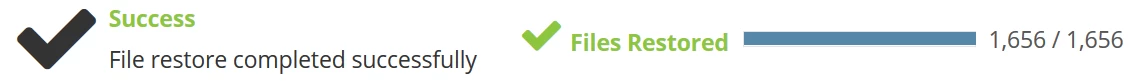 - Atstatymo laikas svyruoja, priklausomai nuo failų skaičiaus ir jų dydžio. Atstatymo pabaigoje gausime sėkmės pranešimą.