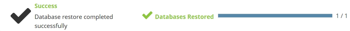 - Atstatymo laikas priklauso în nuo duomenų bazės dydžio. Baigus, mus pasitiks sėkmės pranešimas.