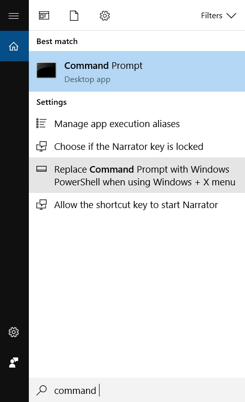 Pavyzdžiui, naudojant Windows operacinę sistemą, atidarysime Command Prompt programėlę.